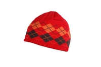 Приятная трикотажная шапка. Украшена геометрическим рисунком. Двойной слой основного материала